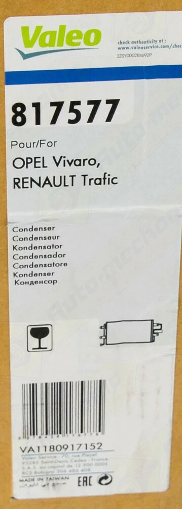 Радиатор кондиционера на Renault Trafic II 2001->2006 1.9dCi+2.0 — Valeo - VAL817577