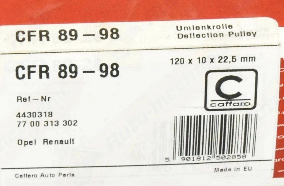 Ролик направляющий ремень генератора (6 ребер) на Renault Trafic II 2001->2006 1.9dCi — Caffaro - CFR89-98
