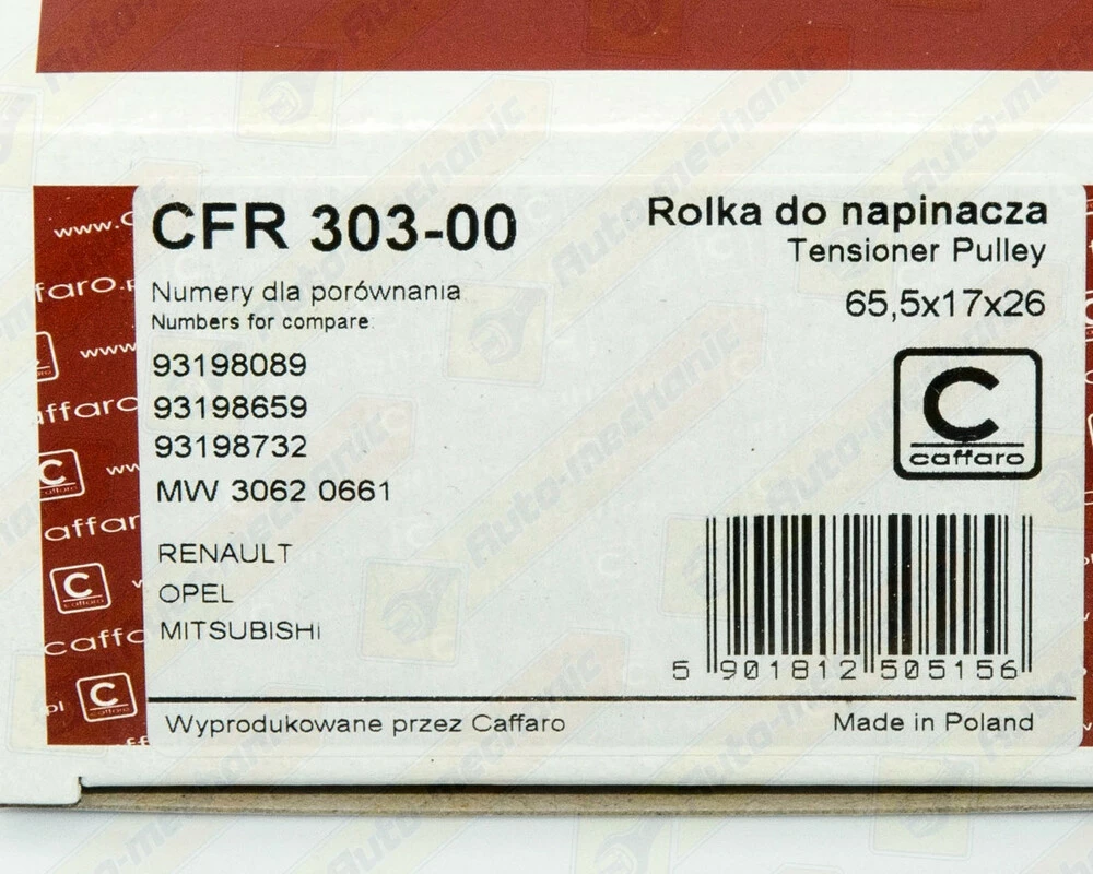 Ролики натяжителя ремня на Renault Trafic 2001-> 1.9dCi (-AC) — Caffaro (Польша) - CFR303-00