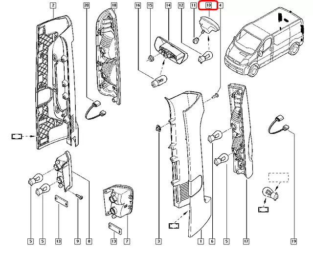 Задний фонарь верхний на Renault Trafic 01-> - Polcar (Польша) — 604291-X