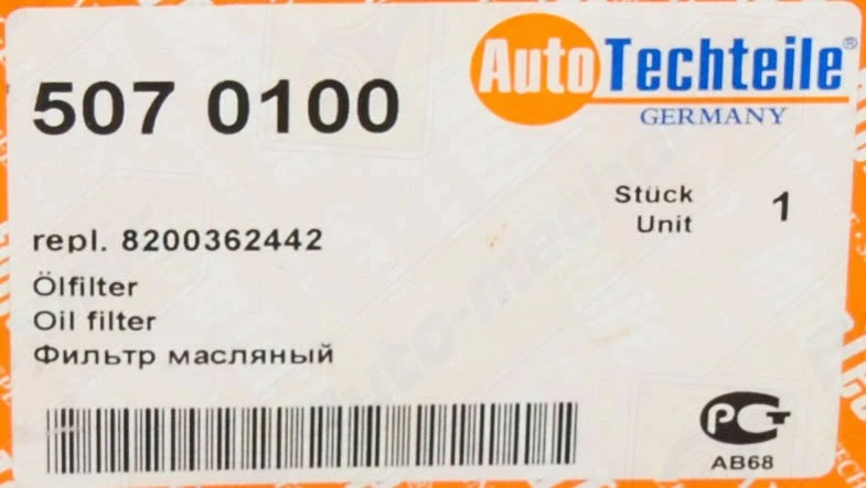 Фильтр масла 2.0dCi — AutoTechteile (Германия) Код 507 0100