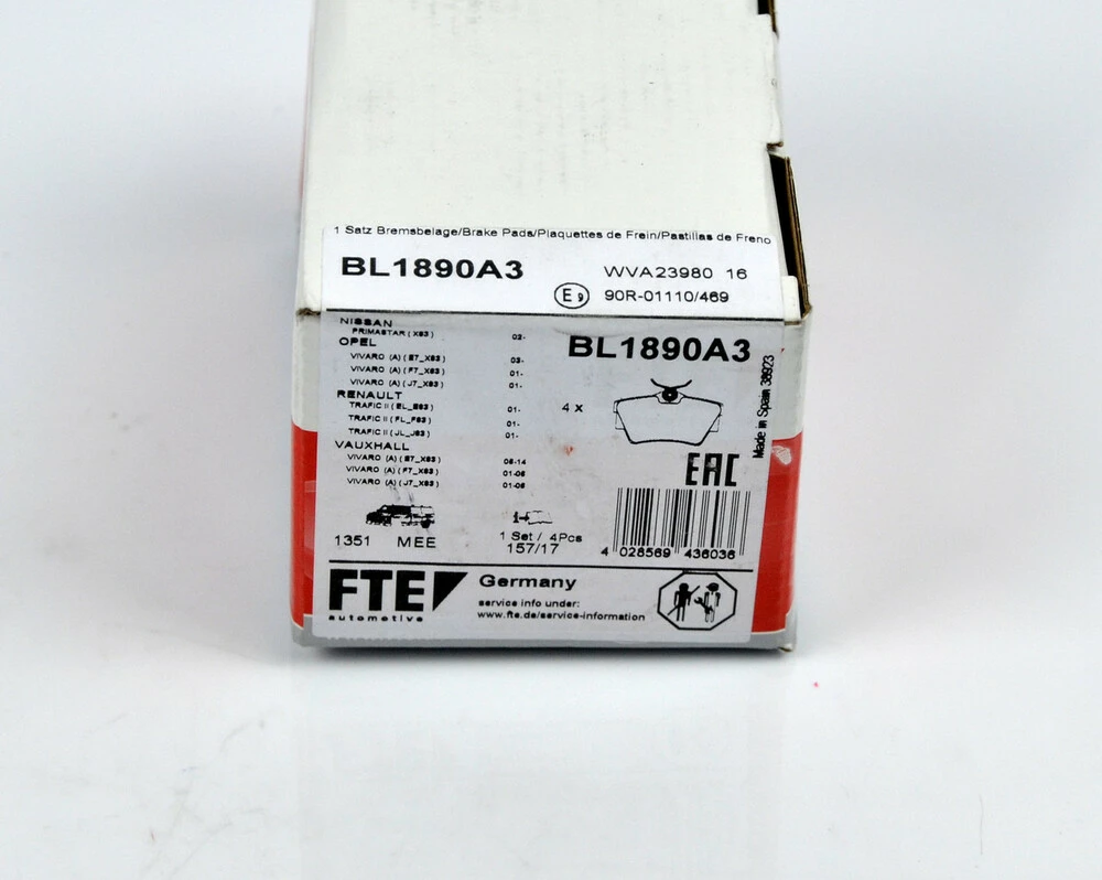 Дисковые тормозные колодки (задние) на Renault Trafic II 2001->2014 - FTE (Германия) — BL1890A3