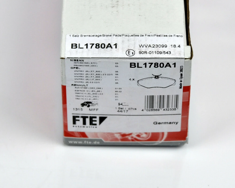 Дисковые тормозные колодки (передние) на Renault Trafic II 2001->2014 - FTE (Германия) — BL1780A1
