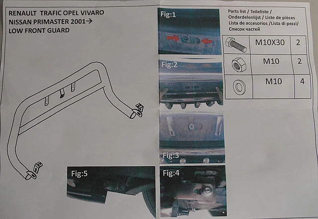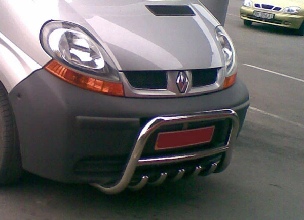 Кенгурятник с грилем и круглой перемычкой на Renault Trafic + Opel