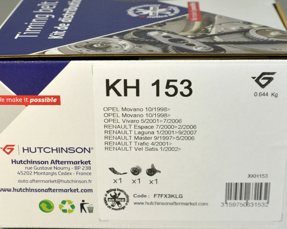Комплект натяжитель + ролик + ремень ГРМ на Renault Trafic 2003->2006 2.5dCi — Hutchinson - KH 153