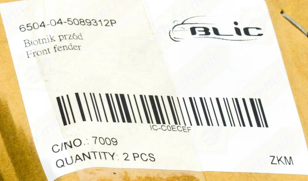 Крыло переднее (R, правое) — BLIC (Польша) Код 6504-04-5089312P