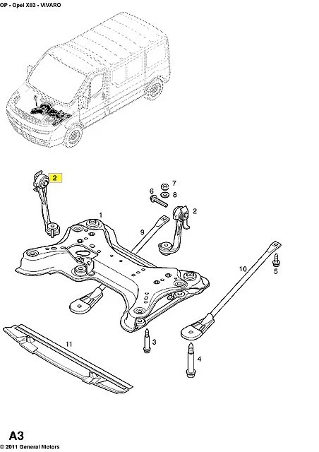 передней оси к нижней части кузова на Renault Trafic + Opel Vivaro