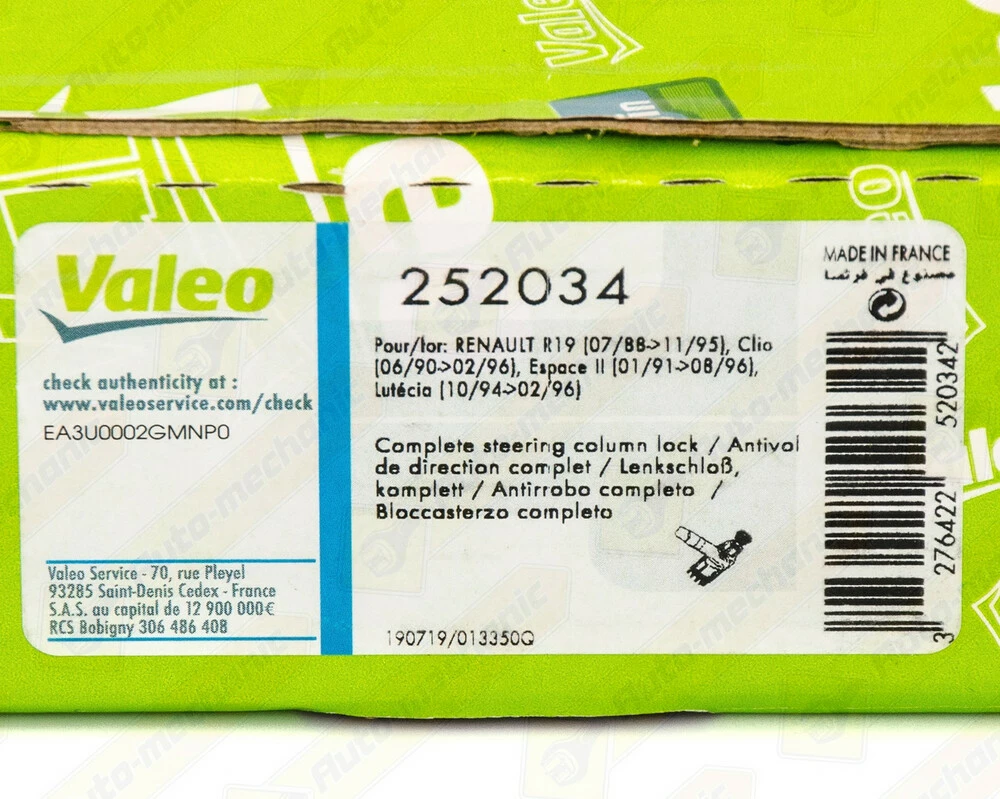 Замок зажигания — Valeo (Франция) Код VAL252034 Автомобили Renault