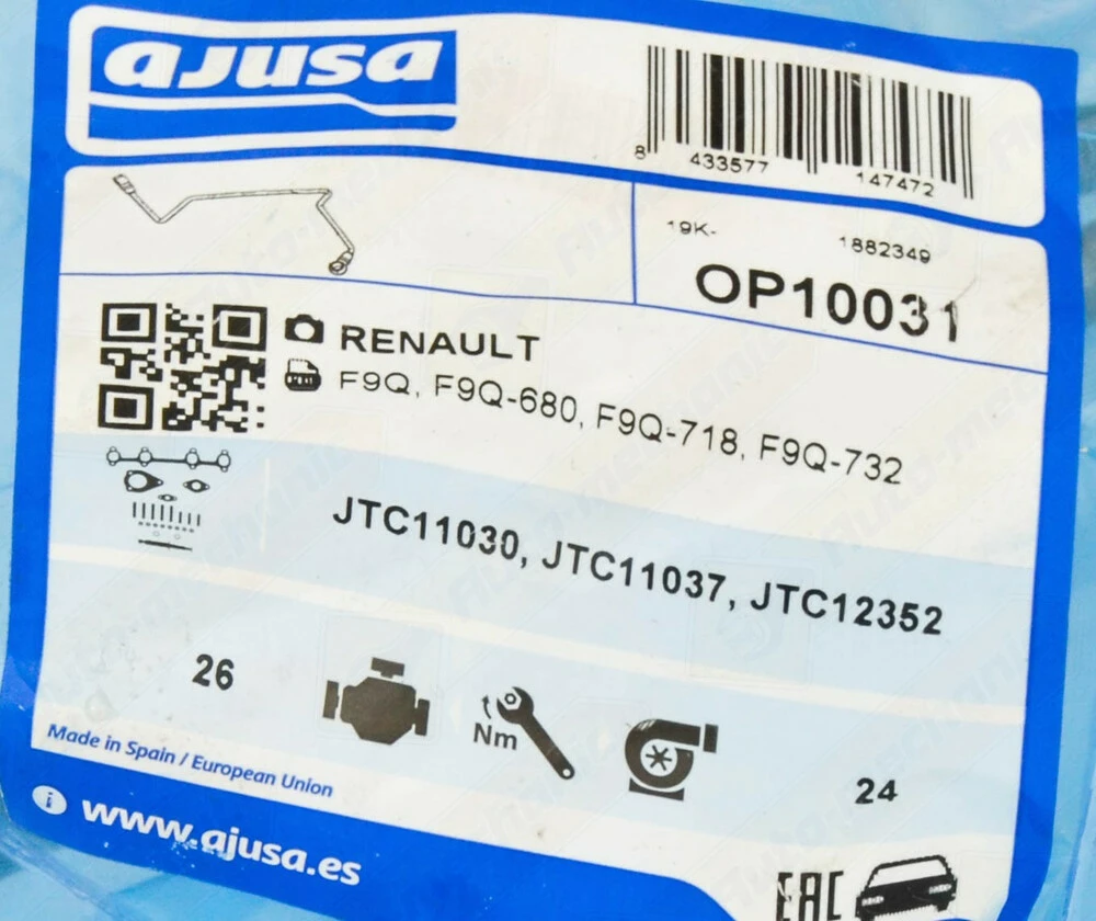 Масляная трубка турбины (впускная) 1.9dCi — Ajusa (Испания) Код