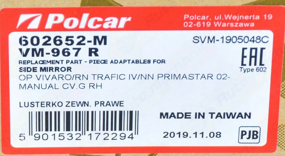 Ucel (Турция) Код 602652-M Автомобили Renault Trafic II, Opel