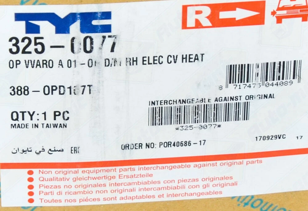 - Код запчасти: TYC 388-OPD107T