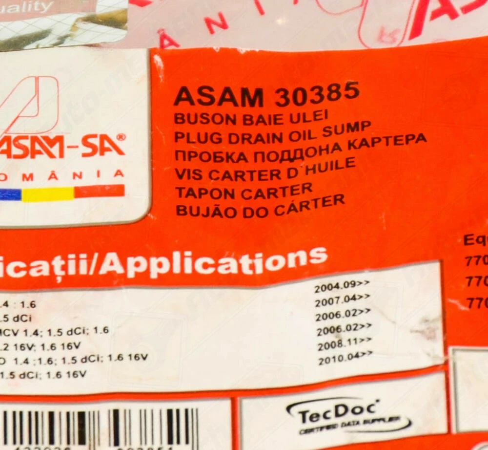 Болт слива масла 1.9dCi — ASAM (Румыния) Код 30385 Автомобили