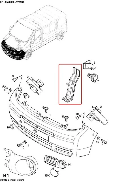 Планка бампера на Renault Trafic 2001->2006 — OPEL (Оригинал) - 4408408 / 8200005091 / 91165574