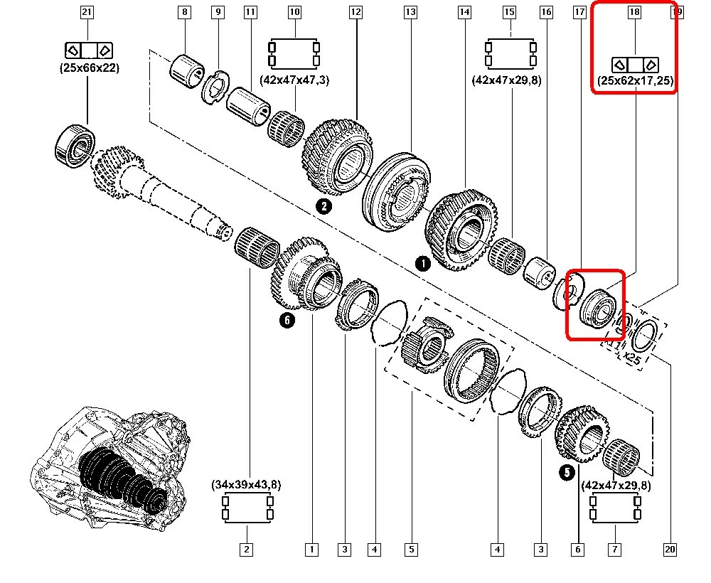 Подшипник КПП (25x62x17.25) на Renault Trafic III 2014-> Renault (Франция) - 322236417R