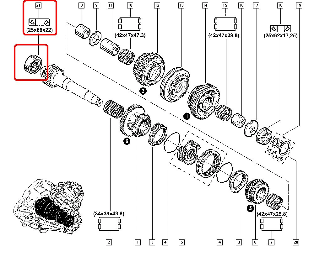 Подшипник КПП (25x66x22) на Renault Trafic III 2014-> Renault (Франция) - 322637415R