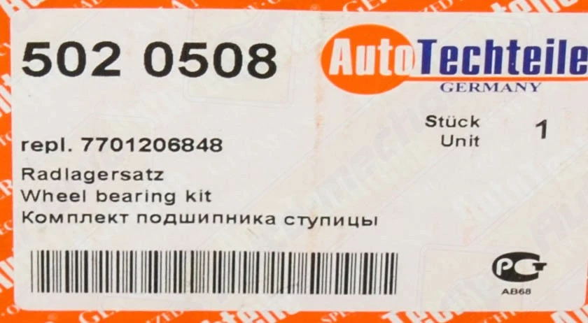 Подшипник ступицы передней (86*45*39, + ABS) на Renault Trafic II 2001->2003 — AutoTechteile - 5020508