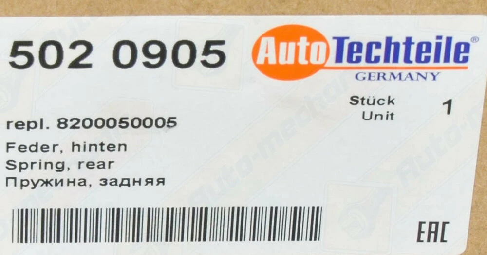Пружина задняя (груз) — AutoTechteile (Германия) Код 502 0905