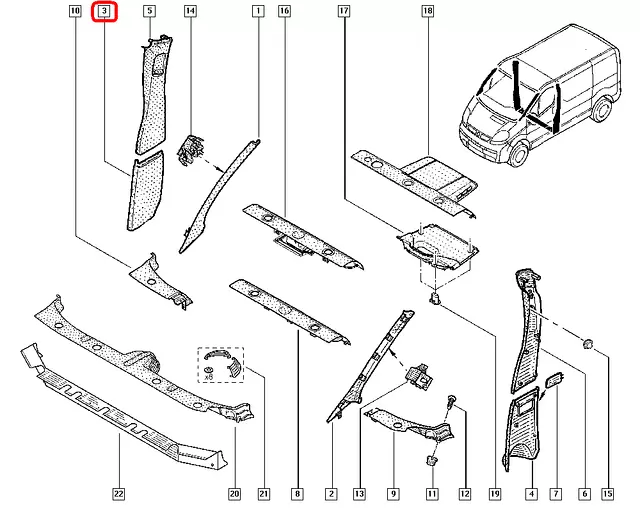 Пластиковая оббивка салона (правая стойка, низ) на Renault Trafic 2001-> — Оригинал Renault - 8200006068