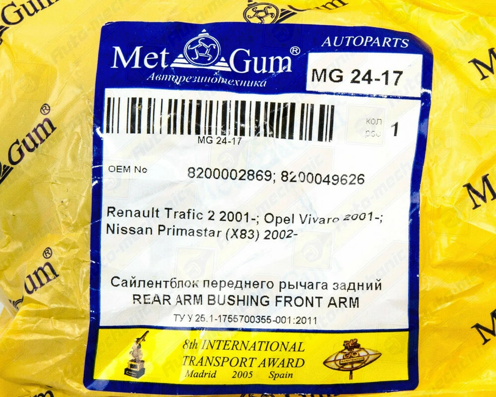 Сайлентблок рычага, передняя ось (задний) на Renault Trafic II 2001->2014 — MetGum - 24-17
