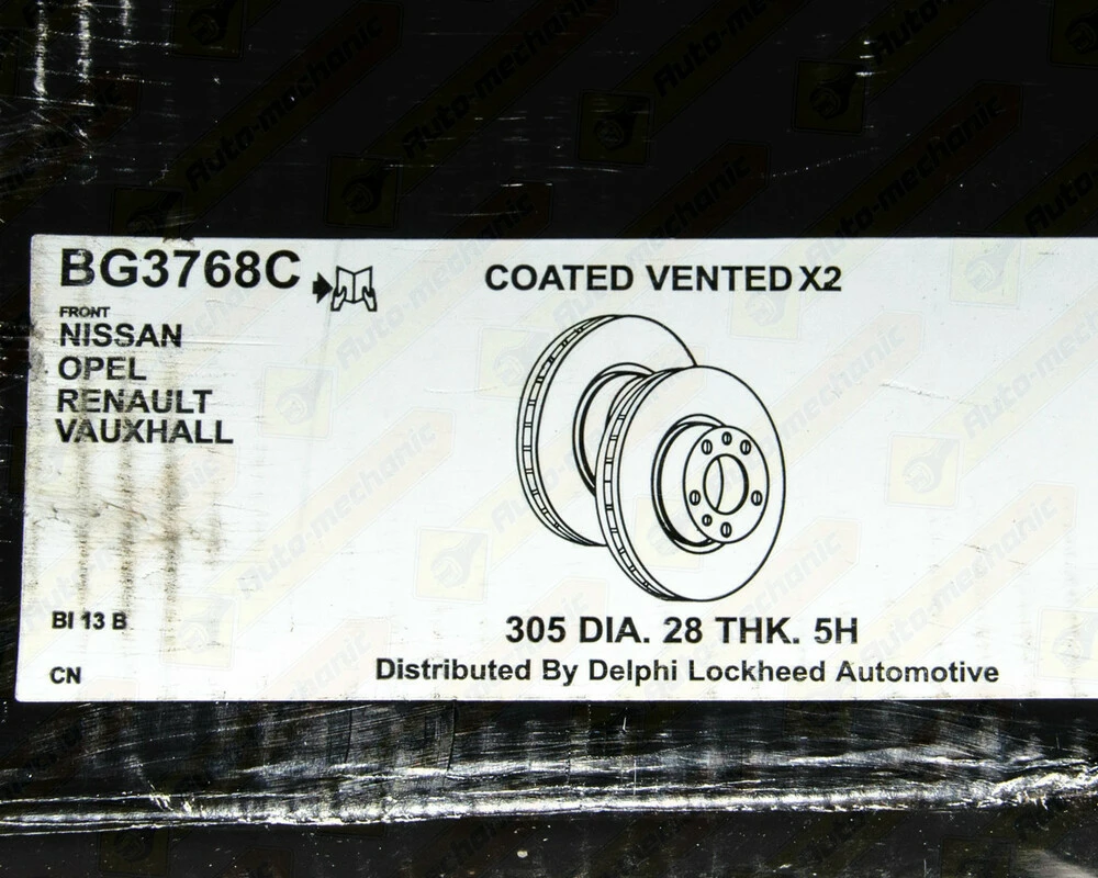 Тормозной диск передний на Renault Trafic II 01->2014 - Delphi (Великобритания) - BG3768C