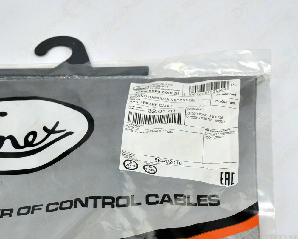 Трос ручного тормоза *502mm* на Renault Trafic II 2001->2014 - Linex (Польша) - LIN32.01.81